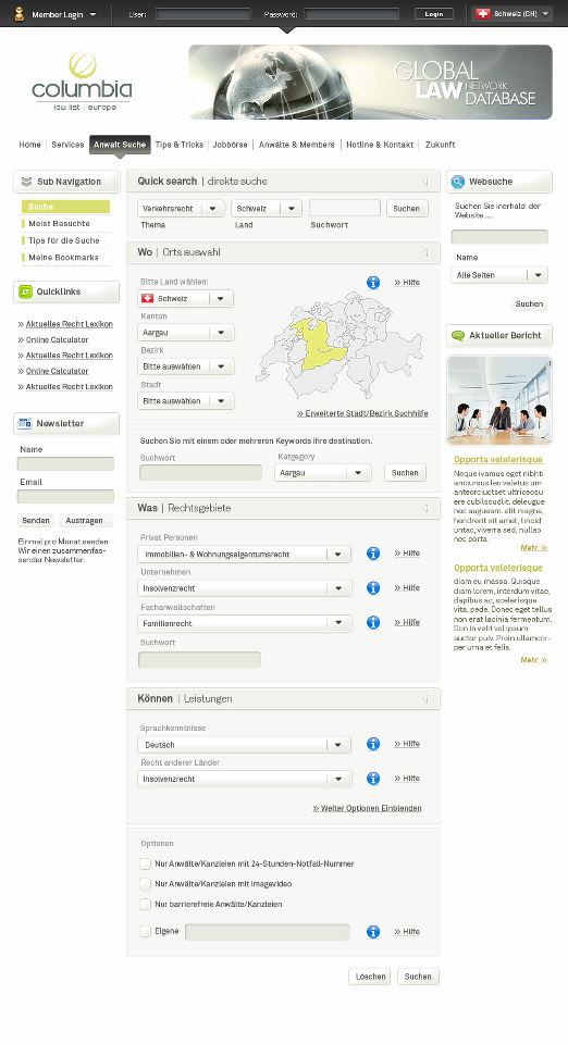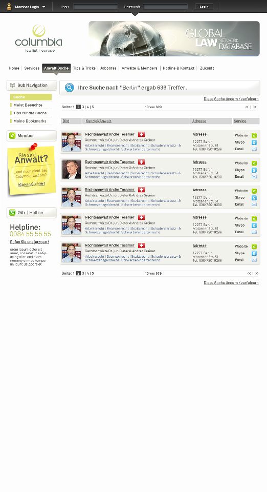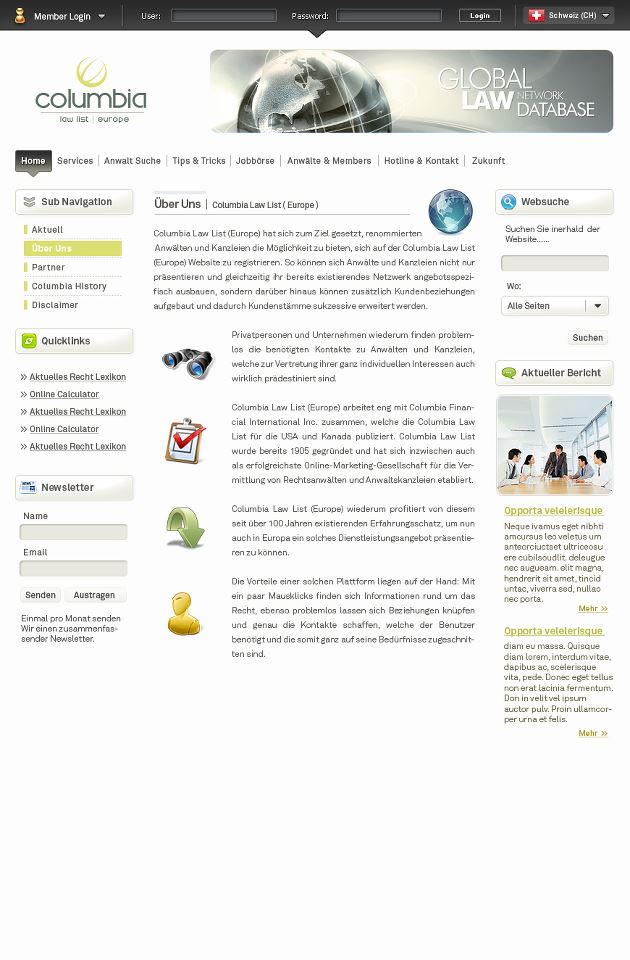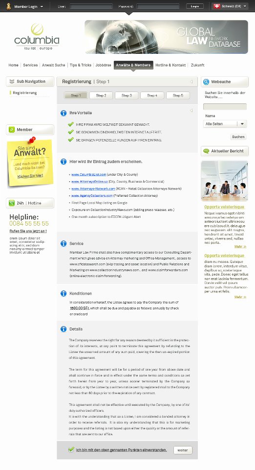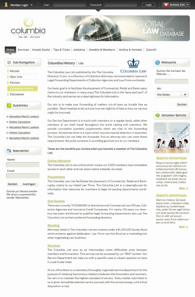 Description: Create the Columbia Law List website for the Miami firm of the same name. The company represents the network of all lawyers who have successfully completed their studies at the University of Columbia.