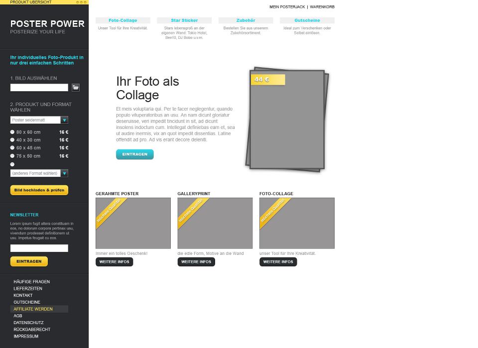 Description: Website Poster Jack, high layers of images for printing photos and posters, from placing orders to payment all online.