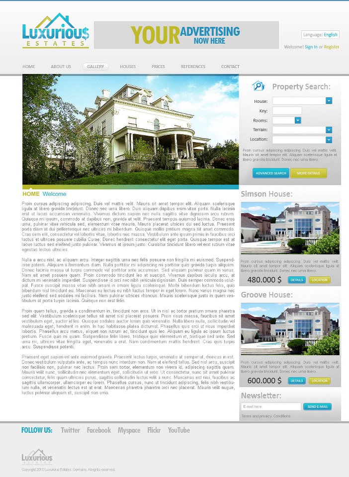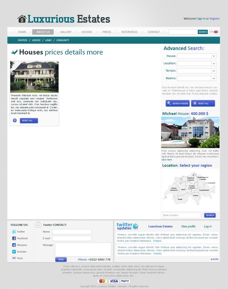 Description: Website for a real estate company in Cologne, Germany, which uses the website to market their properties around the country and abroad.